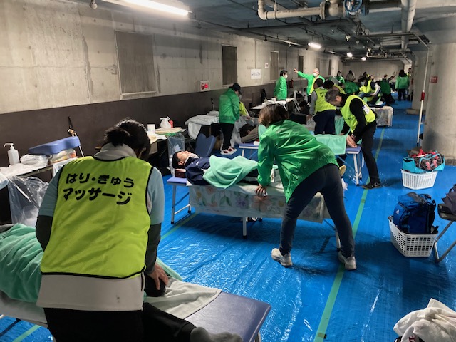 簡易ベッド10台を設置して141名(鍼42名、マッサージ99名)のランナーに受療していただきました